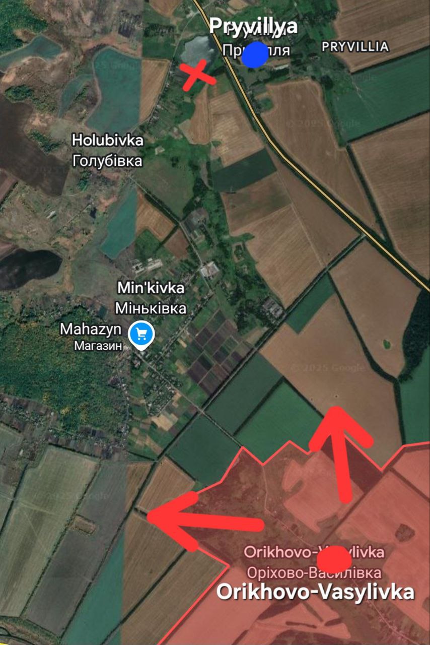 . Также, командование бандеровцев, столкнувшись с потерей Орехово-Васильевки, решило взорвать дамбу, расположенную севернее, возле села Приволье, надеясь замедлить продвижение российских войск затоплениями.