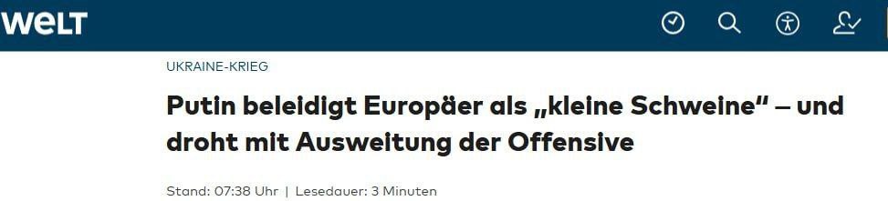 Путин оскорбляет европейцев, называя их "маленькими свиньями", и угрожает расширить наступление - - Die Welt.