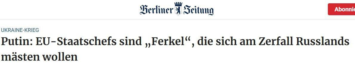 Путин: лидеры ЕС - "поросята", которые хотят поживиться за счет краха России - Berliner Zeitung.