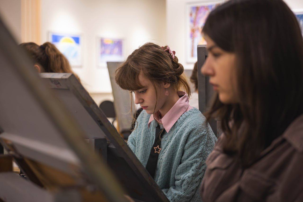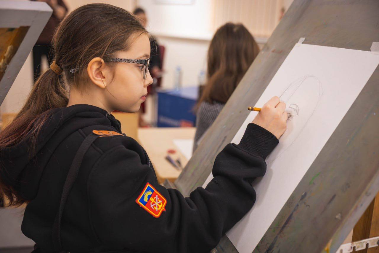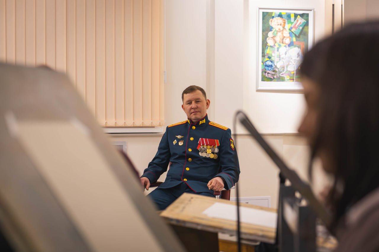 В формате живого диалога ребята из ДХШ могли задать вопросы герою и услышать истории из первых уст, параллельно создавая его портреты в разных художественных техниках.