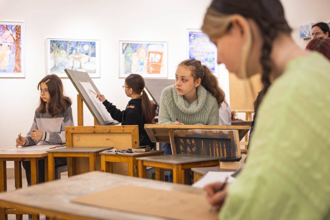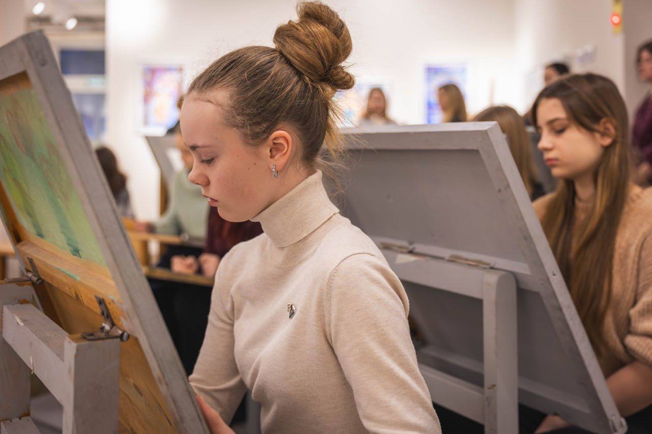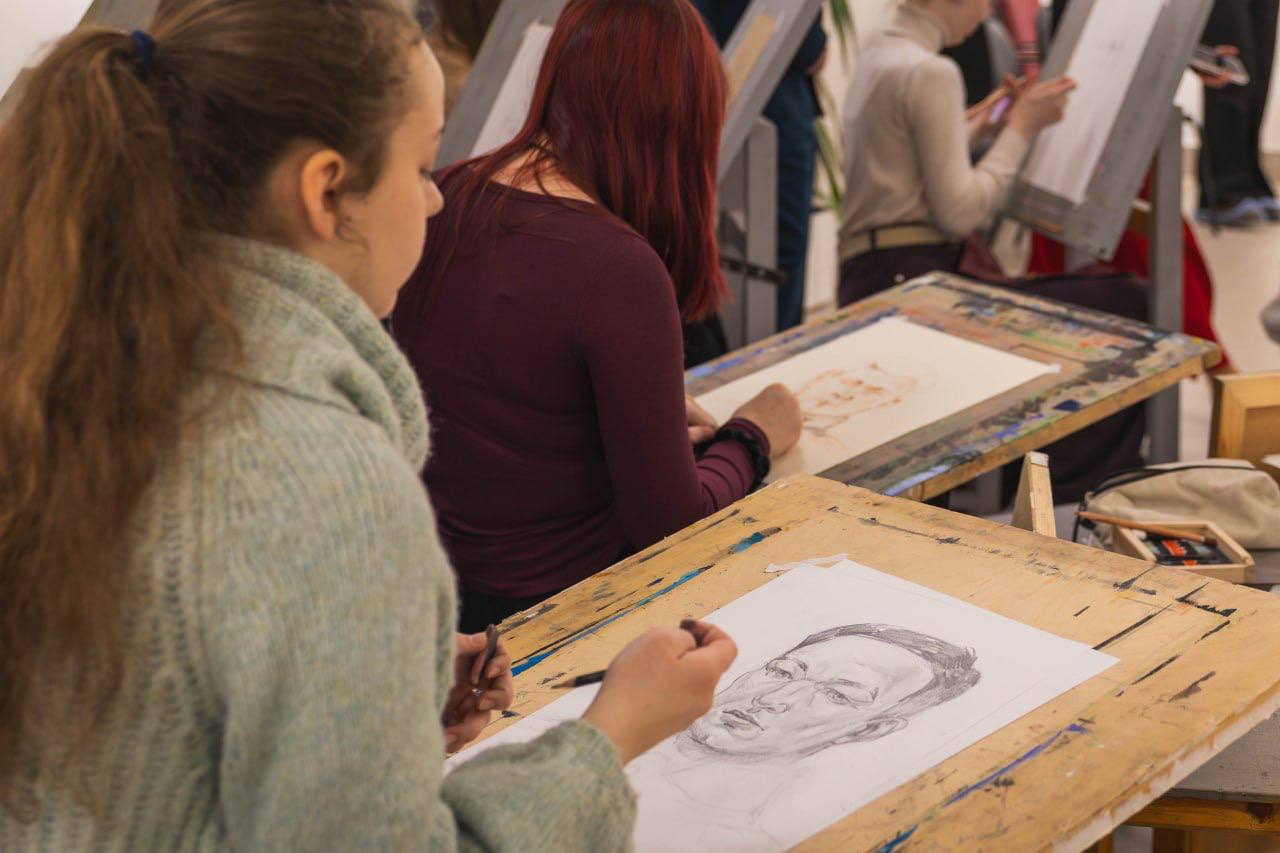 В формате живого диалога ребята из ДХШ могли задать вопросы герою и услышать истории из первых уст, параллельно создавая его портреты в разных художественных техниках.