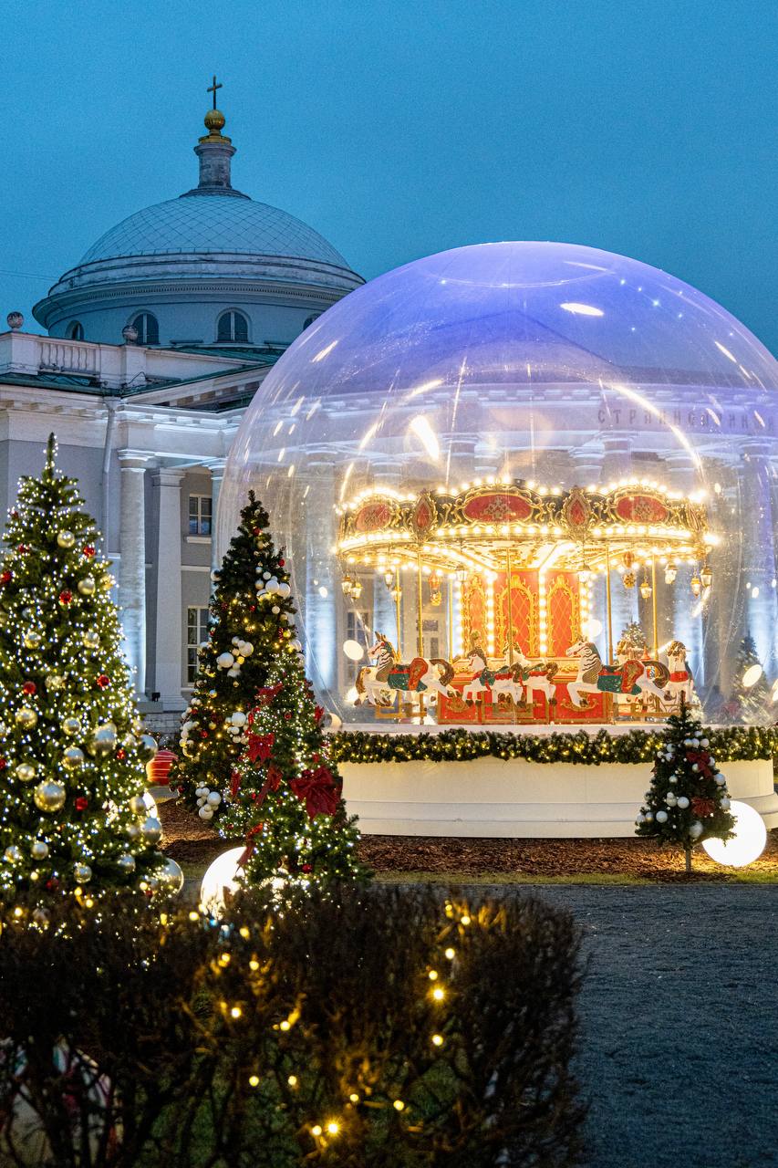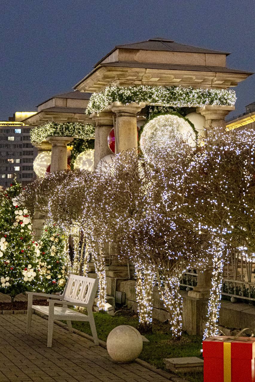 Посетители не только могут погулять по дорожкам и насладиться сказочной предновогодней атмосферой, но и пройтись между колонн уникальной для Москвы полукруглой открытой полуротонды, созданной знаменитым Джакомо Кваренги в начале 19 века.