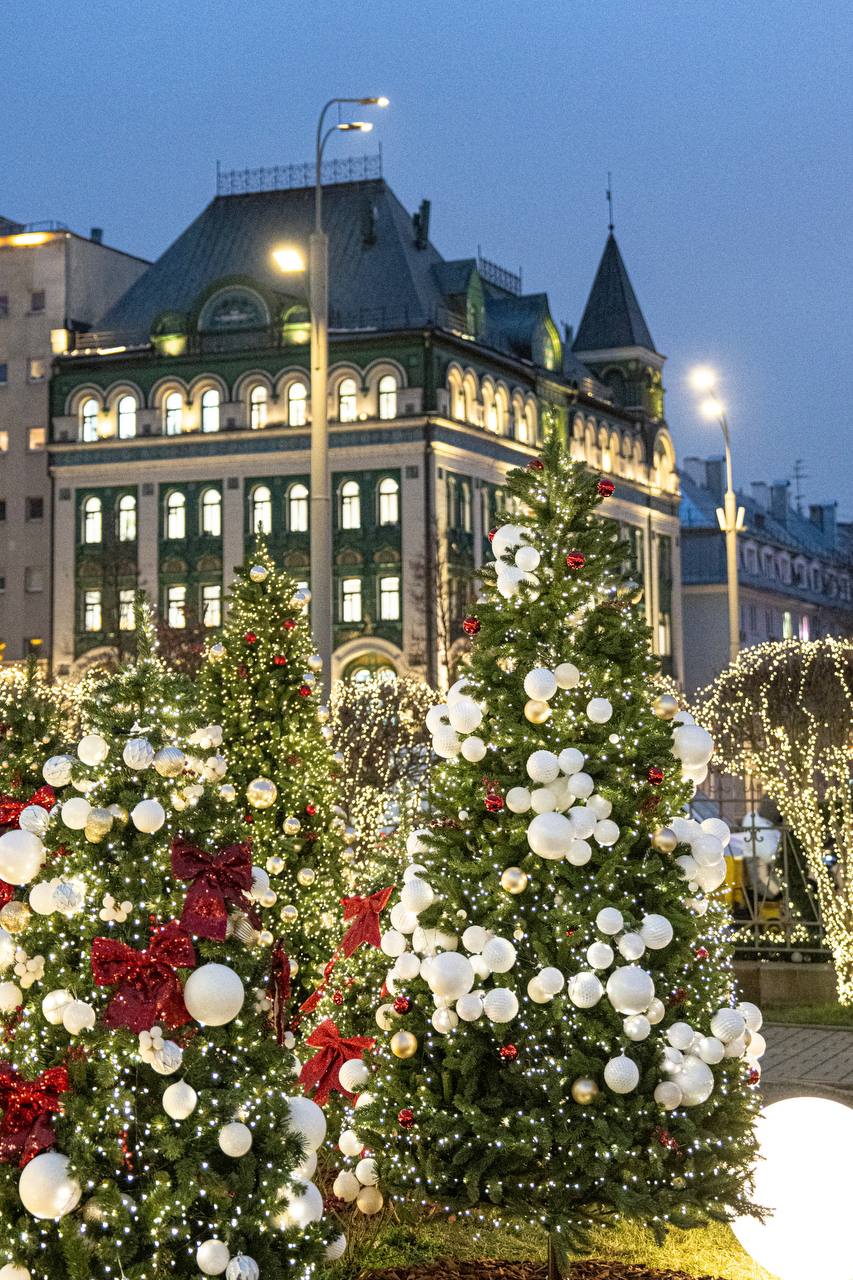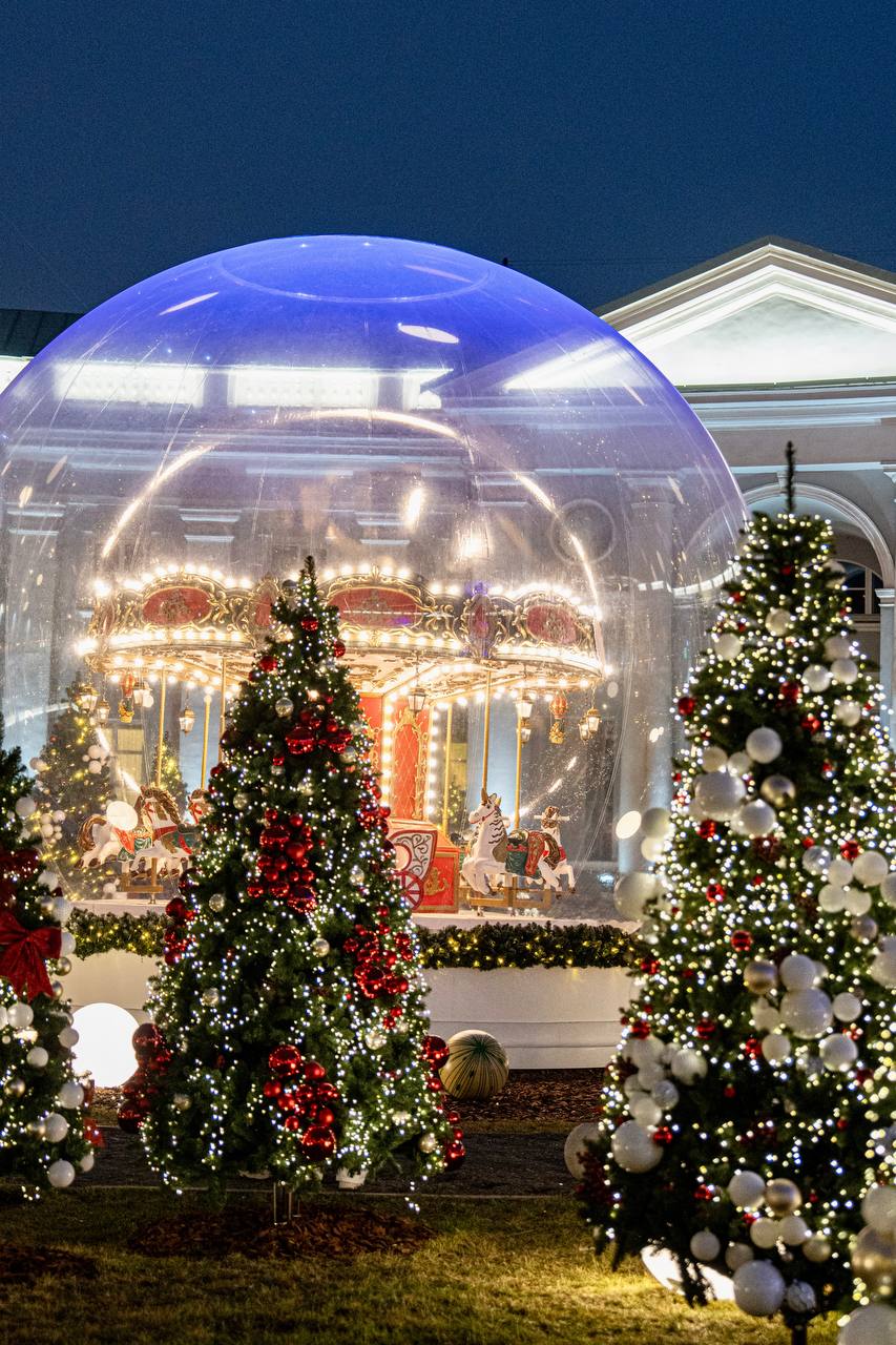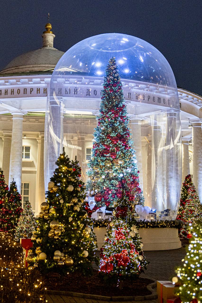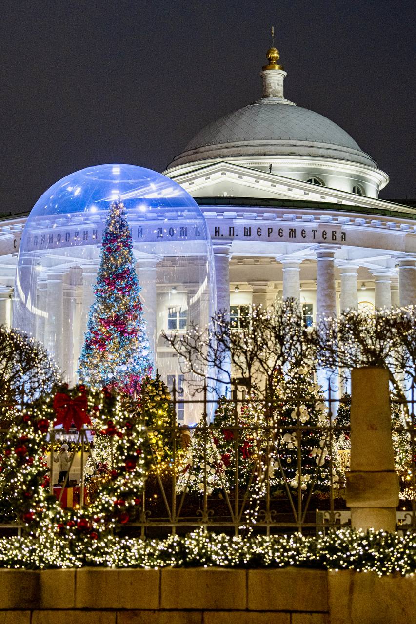 Новая новогодняя локация этого года - украшенный огромными шарами со снегом двор Странноприимного дома Н.П.Шереметева.