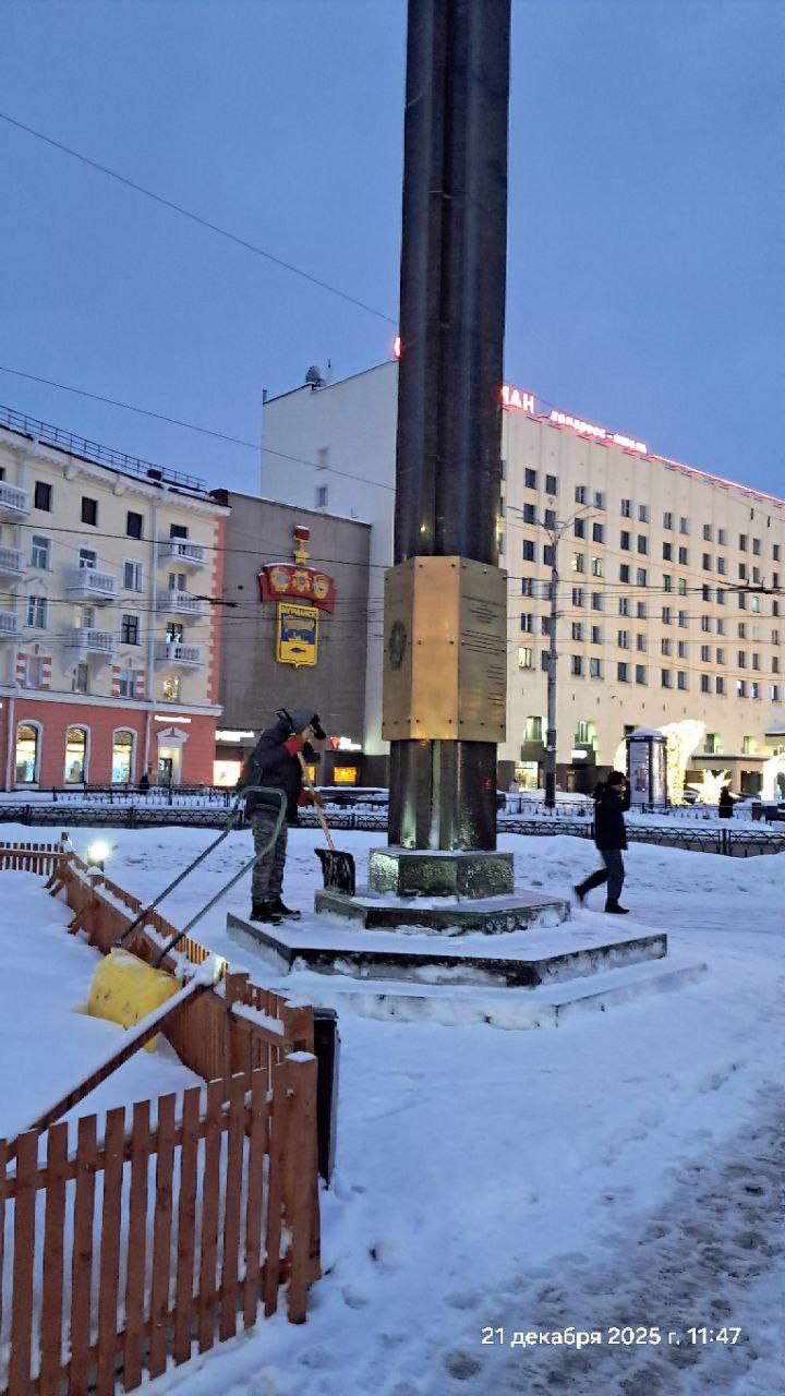 Столица Кольского Заполярья активно готовится к Новому году, скверы, бульвары и зоны отдыха, украшенные праздничной иллюминацией, полны гуляющих мурманчан, а игровые площадки – детворы, что добавляет ответственности работникам МГПС. Сегодня в уборке задействованы 31 дворник и техника.